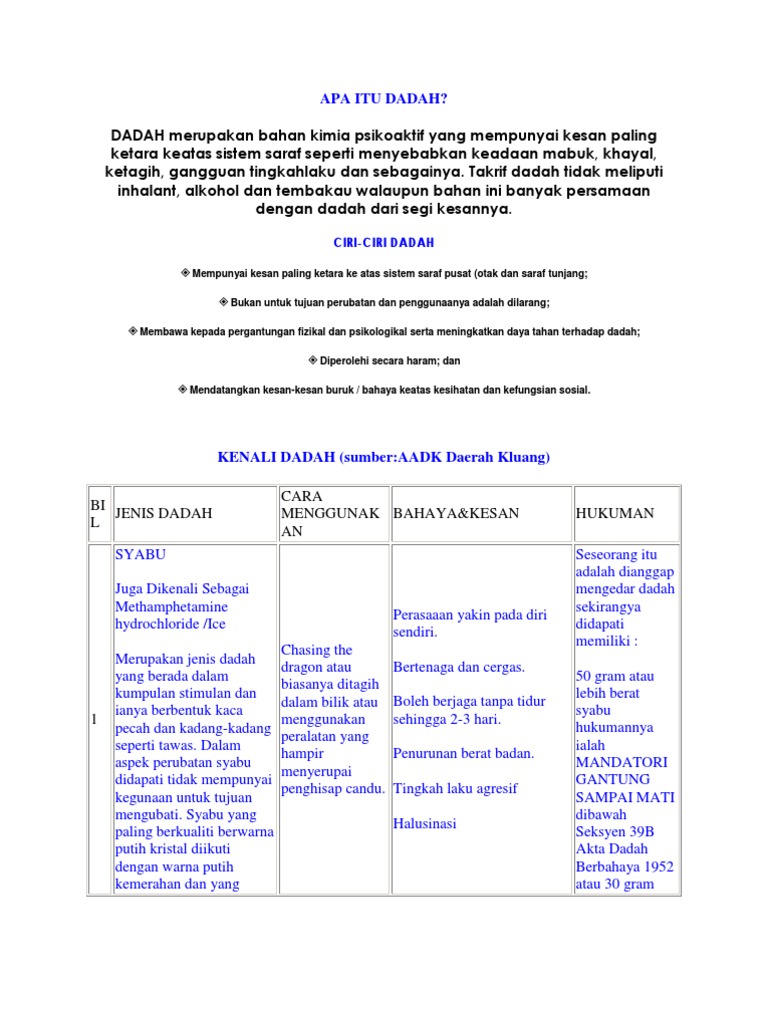 Kesannya termasuk rasa mual, muntah dan ganguan terhadap sistem saraf pusat. Kesan pengambilan dadah ke atas diri. Halusinogen adalah jenis dadah asli dan sintetik yang mengubah pencerapan deria. Walau bagaimanapun, inhalant mempunyai banyak persamaan dengan dadah dari segi kesannya. Panduan untuk ibu bapa dan ahli keluarga. Sebarang pertanyaan/komen/cadangan boleh berhubung di. Dadah jenis narkotik umumnya boleh dibahagikan kepada dua iaitu jenis morfin dan kodeina. Energy1) adalah jenis dadah perangsang yang berkait rapat dengan mephedrone. Pengambilan dadah jenis syabu/ice sangat popular dikalangan generasi muda yang urban. Info untuk anda dalam mengenal jenis dadah dan kesannya terhadap diri dan persekitaran. 5 jenis dadah paling berbahaya di dunia (top mode). Kursus khas pencegahan dadah anjuran agensi dadah kebangsaan jenis dadah dan kesannya ke atas manusia jenis dadah dan kesannya perangsang dadah narkotik produk hasilan pokok poppy dadah narkotik jenis candu kodein, morfin, heroin, metadon dan. Terkini cecair vape perisa ganja ketamin tumpas pdrm.