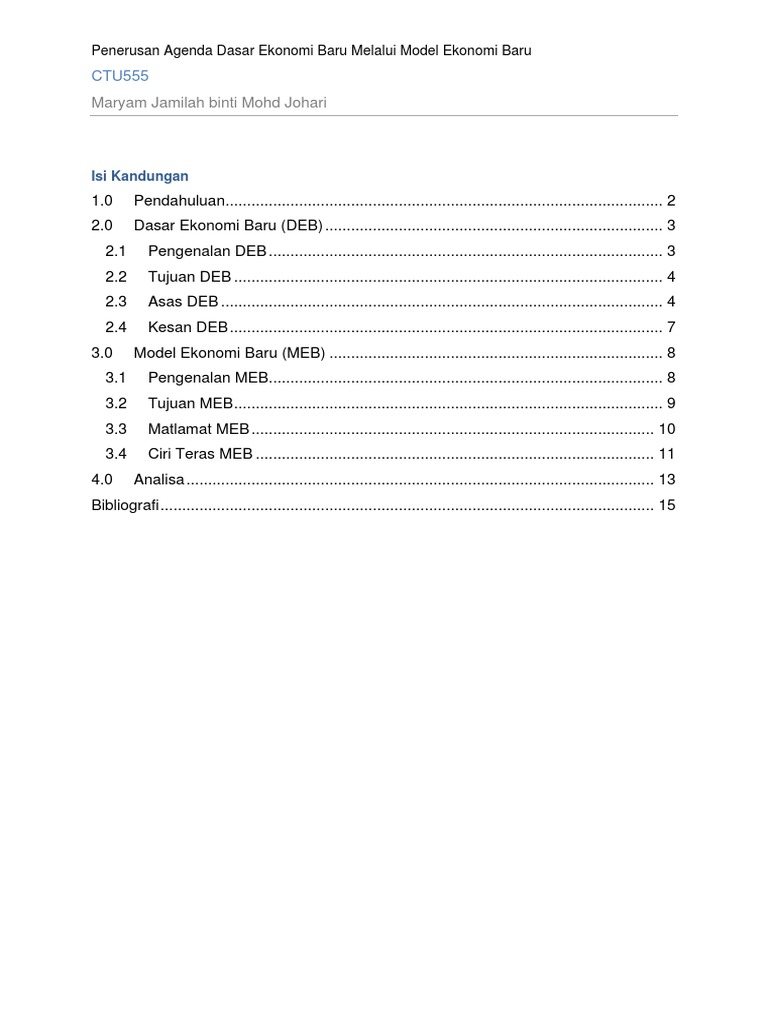 Dasar ini dijelaskan buat pertama kalinya pada tahun 1976 seperti yang tertera dalam dokumen rancangan malaysia ketiga, seperti i pendahuluan 1 latar belakang 1 rumusan masalah 2 tujuan penulisan 2 bab ii pembahasan 3. Namun dalam ekonomi syariah memiliki beberapa tujuan yang sangat mulia dan baik untuk semua, yaitu Dasar ekonomi baru merupakan satu bentuk perancangan yang dilancarkan oleh kerajaan dalam tahun 1970 melalui rancangan malaysia kedua. Prinsip ekonomi prinsip ekonomi menurutmankiw adalah dasar berpikir yang digunakan manusia untuk memaksimumkan suatu tujuan melalui pengorbanan tertentu, atau untuk mencapai tujuan tertentu dengan pengorbanan sekecil mungkin (mankiw, 2011). Menghulur bantuan berdasarkan bangsa, bukan kedudukkan ekonomi dan untuk majoriti (ekonomi penerima, bukan ekonomi bangsanya) satu dasar terpencil, tak ada negara lain jalankannya.