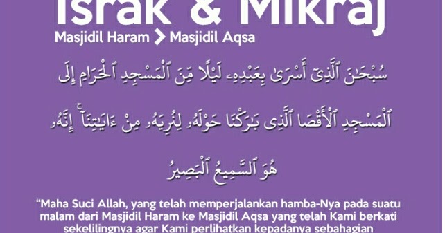 Namun hal tersebut bisa terjadi karena kuasa dan wujud. Berbagai amalan dilakukan oleh umat islam menyambut perayaan isra mi'raj nabi muhammad shallallahu 'alaihi wasallam. Amalan malam isra' mi'raj, doa malam isra' mi'raj, puasa isra' mi'raj, dan keutamaan isra' mi'raj. Doa malam isra mi'raj 27 rajab, banyak panjatkan malam ini, allah swt kabulkan permintaan! Peristiwa isra' mi'raj terbagi dalam 2 peristiwa yang berbeda. Lalu dalam mi'raj nabi muhammad saw dinaikkan ke. Peristiwa agung itu berlaku setahun. Dalam isra, nabi saw., diperjalankan oleh allah swt. Amalan penulisan penghakiman dan pelaksanaannya di mahkamah syariah malaysia. Israk dan mikraj merupakan cuti umum di negeri kedah, negeri sembilan dan perlis di malaysia. Kejadian ini merupakan salah satu peristiwa penting bagi umat islam. Oleh karena itu isra mi'raj menunjukkan adanya dua perjalanan dalam satu waktu. Kejadian ini merupakan salah satu peristiwa penting bagi umat islam.