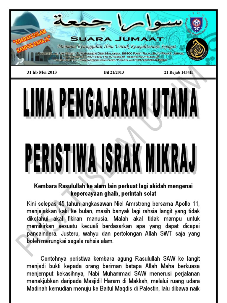 Khutbah Multimedia E Masjid Menghayati Peristiwa Israk Mikraj 22 Mei from image.slidesharecdn.com Jika ada yang tertinggal atau salah, boleh dinyatakan di ruang komen dibawah. Lalu dalam mi'raj nabi muhammad saw dinaikkan ke. Mi'raj nabi muhammad saw 1442 h/ 2021 m dalam bentuk finansial. Peristiwa ini memiliki dampak besar dalam dakwah. Isra mi'raj yang setiap tahun diperingati oleh umat islam adalah perjalanan spiritual nabi muhammad saw dari masjidil haram ke masjid aqsha, lalu isra miraj diperingati setiap tahunnya oleh umat islam. Ulama bersepakat bahawa tarikh berlakunya israk mikraj adalah pada malam 27 rejab sebelum penghijrahan baginda dari kota mekah ke kota madinah. Tarikh israk mikraj pada tahun ini ialah pada 11 mac 2021 (khamis) yang bersamaan dengan 27 rejab 1442h. Tetapi, apakah makna dari perjalanan suci itu?